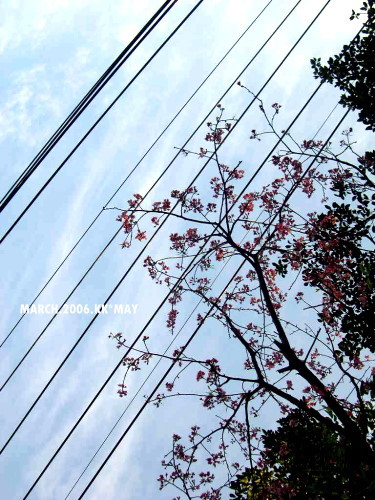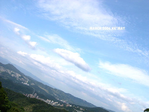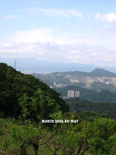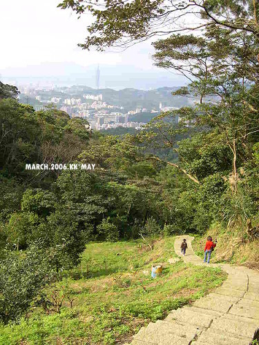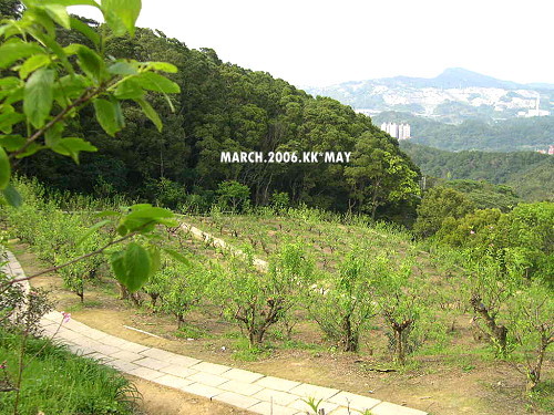 這也是個登山踏青的好地方喔,可以看見整個台北盆地,101、動物園旁化有長頸鹿的煙囪、匍匐在盆地周圍的山嶺......都看的清清楚楚,或許是連日陰雨的乍晴,今天有許多家庭扶老攜幼的上山來,雖然杏花已是零零落落,不過這新鮮的空氣似乎比賞花的情致更勝一籌。
