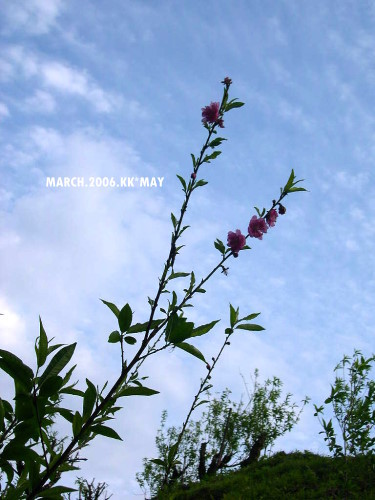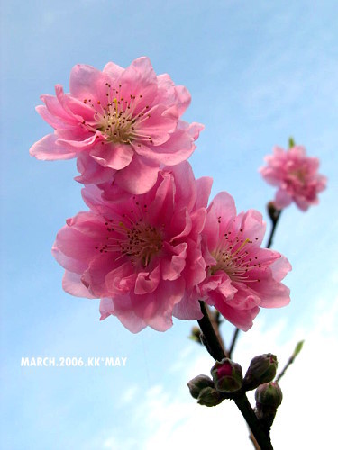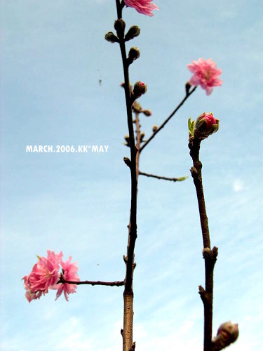 順帶一提,杏花枝很明顯都是向上生長的,枝葉呈現尖銳的意象,開出的花朵卻是這般柔和。向上1