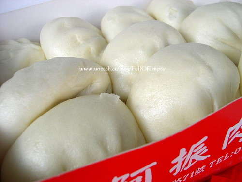 雖然這不是我吃過最好吃的肉包,但我沒有看過這圓噗噗、軟綿綿、白拋拋的肉包。提回K家時,K媽便說:「你們還知道要起買阿振喔?」;帶回宜蘭給外婆吃,外婆也說:「外面的皮吃起來甜甜的。」可見「名氣」這東西是建立在口碑之上的,每個人試過還是有不同感覺的。