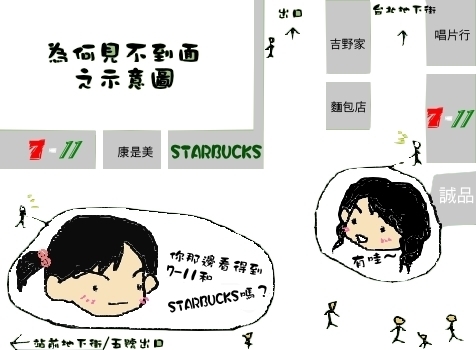 我走到地下一樓Starbucks旁的7-11門口,發現根本沒有老妹的蹤影,馬上發現問題所在,我們所說的7-11應該不是同一家,於是又撥電話給老妹: